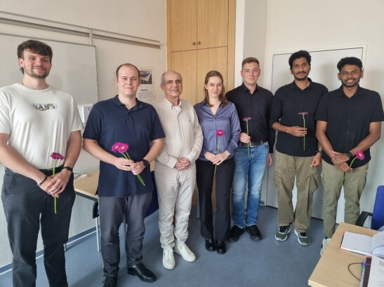 (v. l.: Maximilian Pietsch, Veit Köbernik, Dekan: Prof. Tsotsas, Isabel Bühnemann, Erik Prieske, Amal Kootala, Linson Sunny)